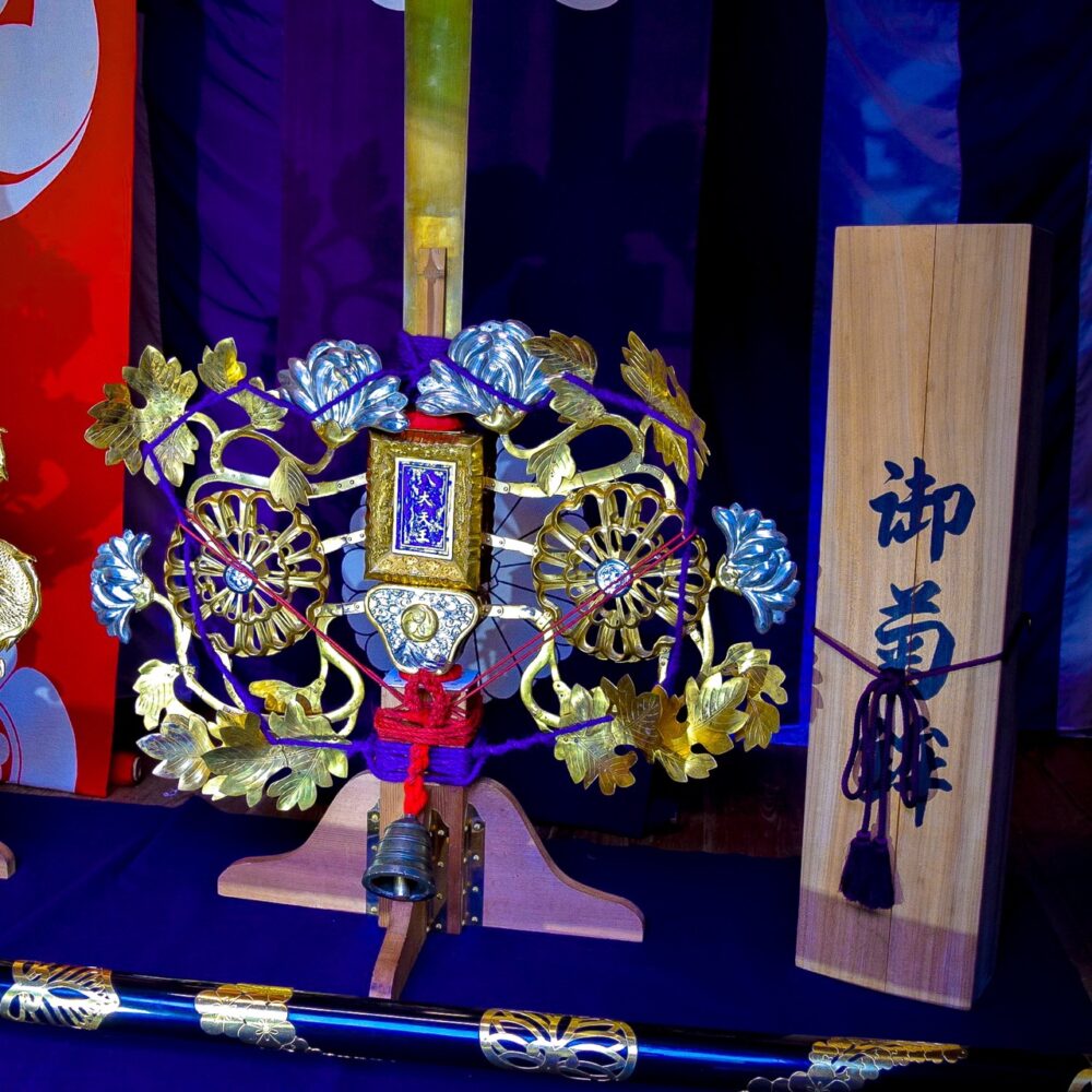 今週より境内拝殿にて祭具「剣鉾」の展示が期間限定で行われています!
