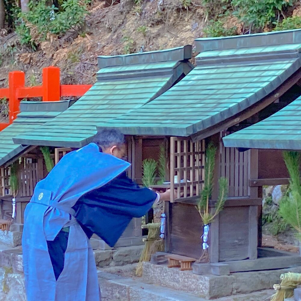 初御供祭は年間7回斎行される御供祭の最初の祭事です。新年を祝し、氏神様の御神徳により氏子を始め崇敬者が、今年も良き年で過ごせるようにお祈りします。