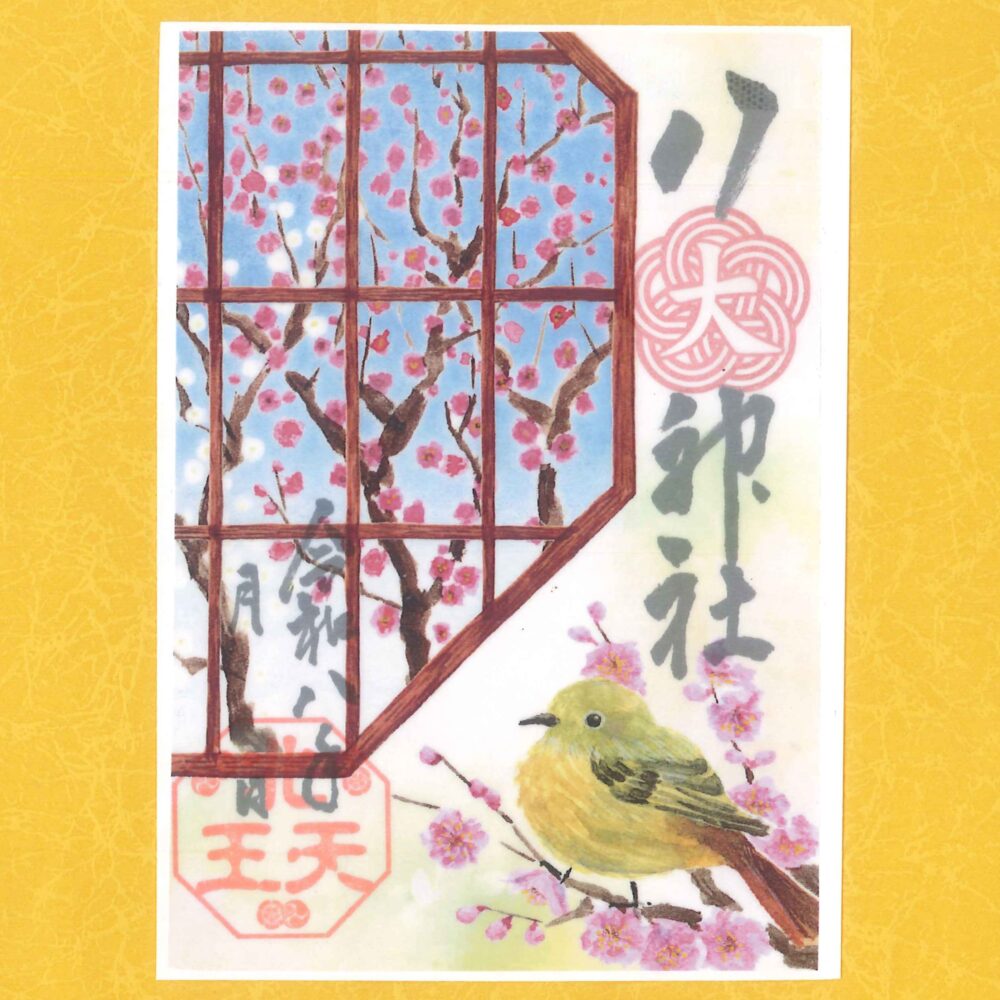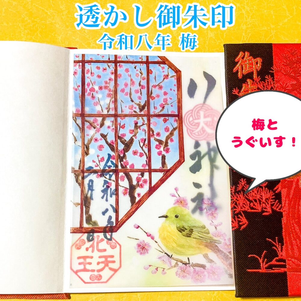 社名を直書きした御朱印に透け紙を重ねる「透かし御朱印 令和八年梅」を2月1日より頒布します。