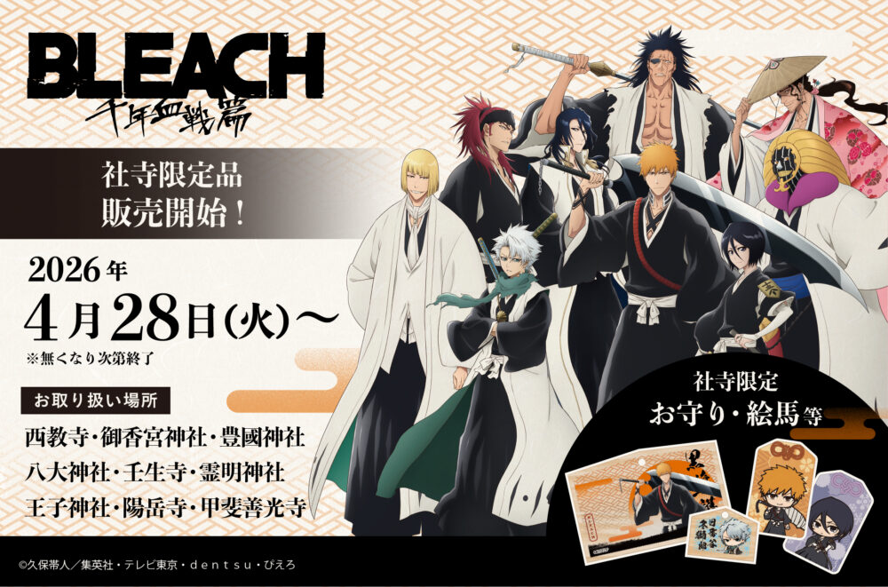 令和8年4月28日(火)より人気アニメ『BLEACH千年血戦篇』の授与品の頒布を開始致しました。
